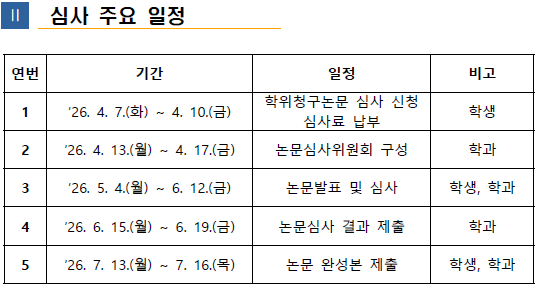 | 2026학년도 1학기 일반대학원 학위청구논문 심사계획 알림 | |||