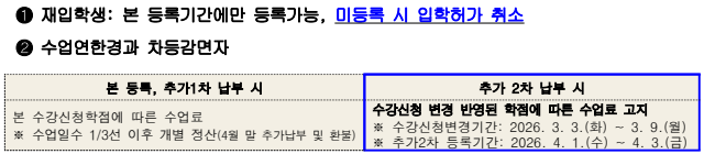 | 2026학년도 1학기 재(복)학생, 재입학생 등 등록금 납부 안내 | |||