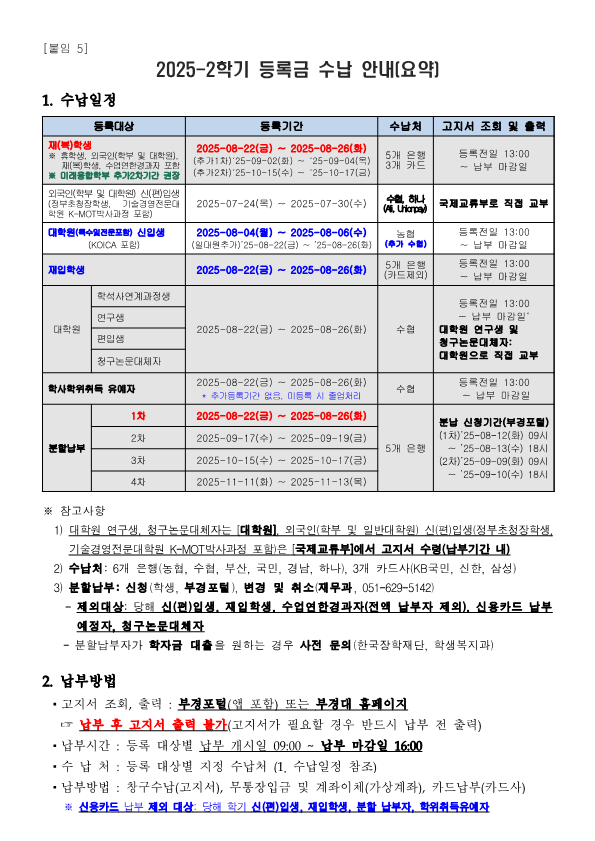 | 2025학년도 2학기 등록금 수납 계획 안내 | |||