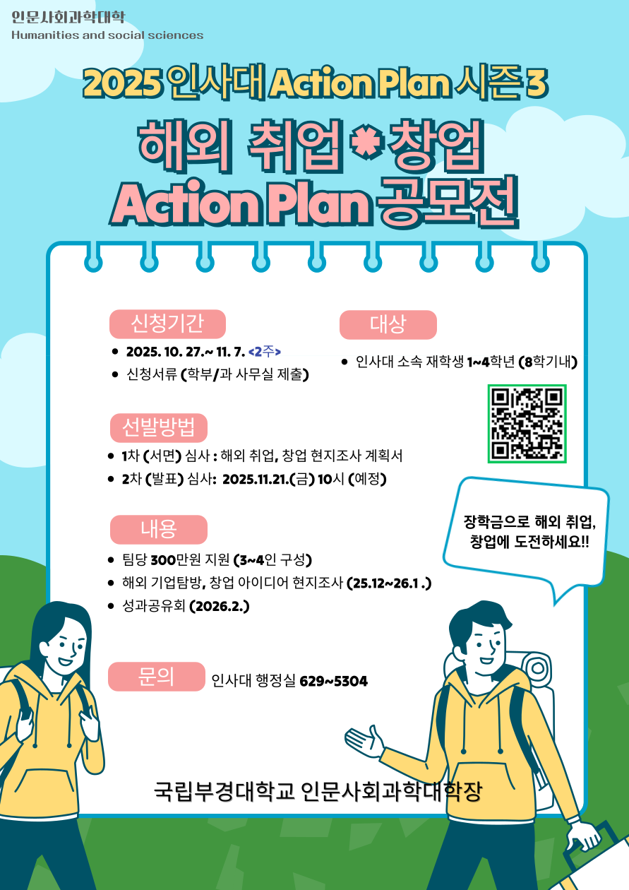 | 2025 인사대 해외 취·창업 Action Plan 공모전 안내(10/27~11/7) | |||