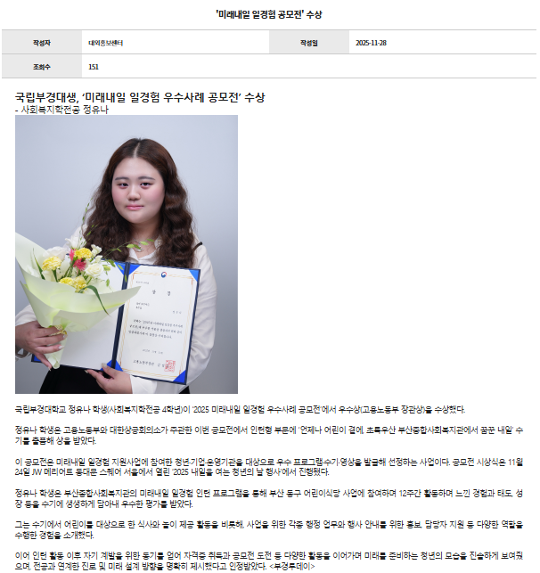 [부경투데이] '미래내일 일경험 공모전' 수상
