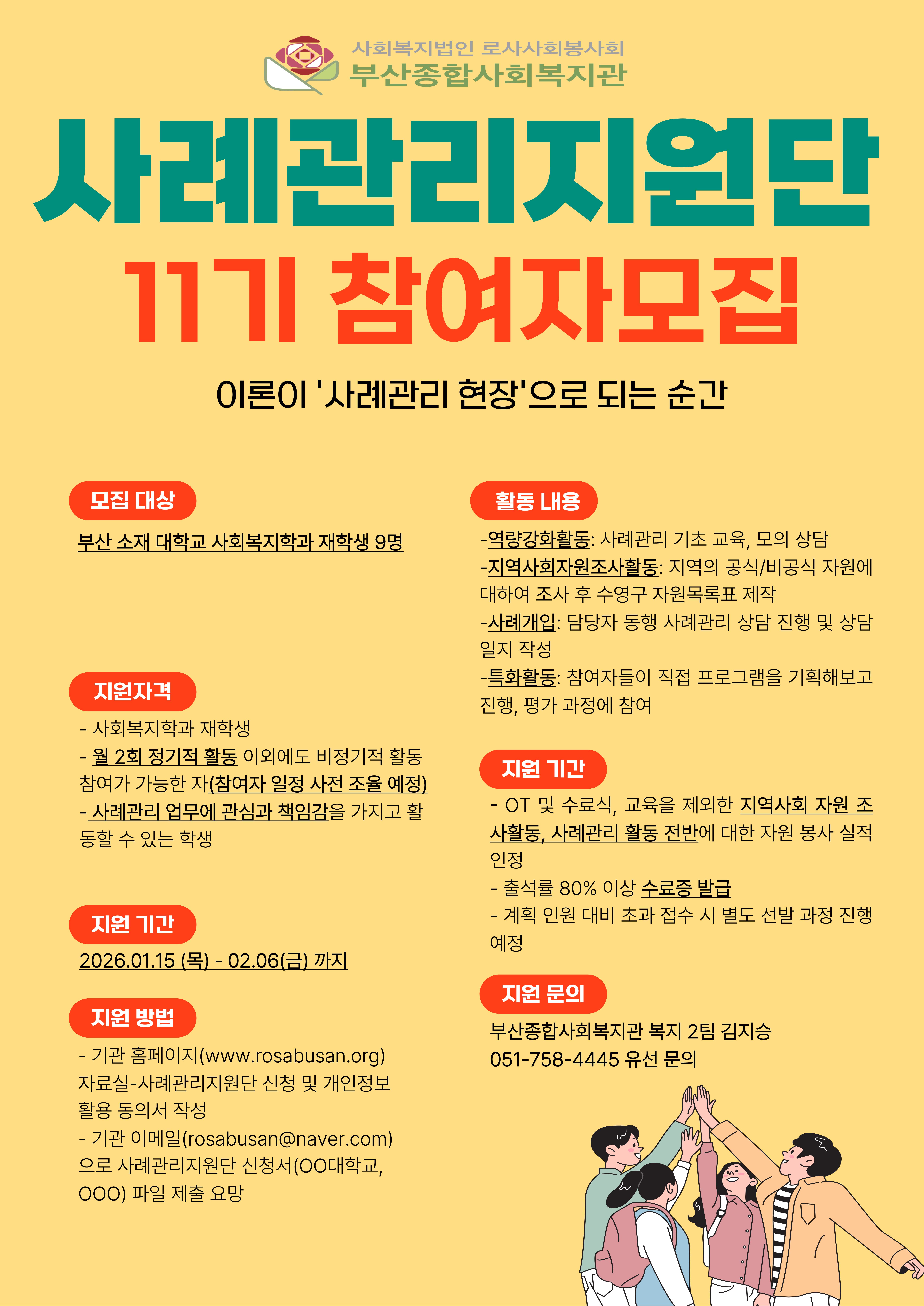 | [교외활동] 부산종합사회복지관 | 2026년도 사례관리지원단 11기 모집 | |||