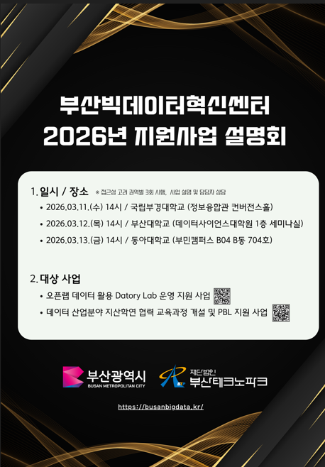 | [부산테크노파크] 2026년 부산빅데이터혁신센터 운영 프로그램 및 지원사업 모집 안내 | |||