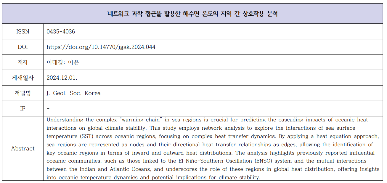 (이은) 네트워크 과학 접근을 활용한 해수면 온도의 지역 간 상호작용 분석