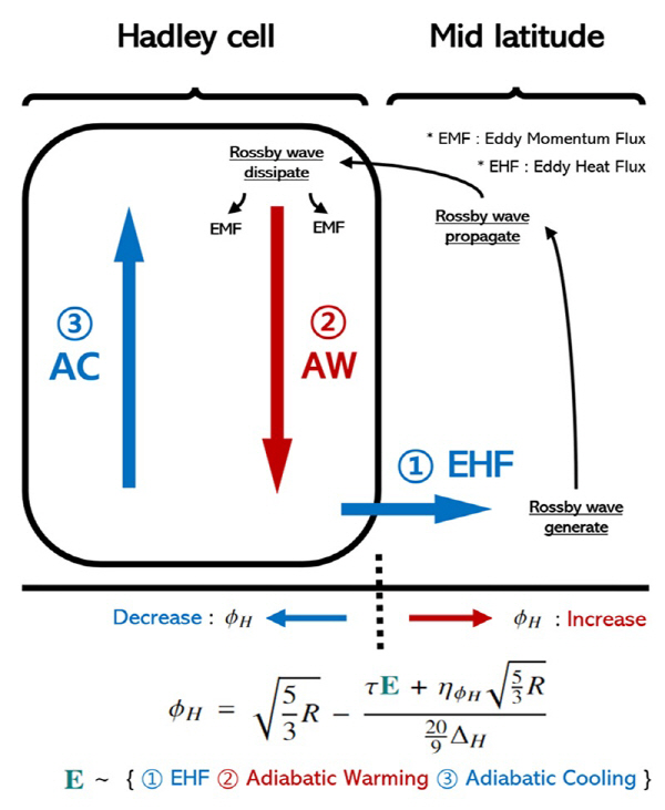 문 교수는 이 고전적 이론을 확장해 중위도 폭풍의 열·운동량 수송을 포함하며, 해들리 순환의 확장과 수축을 결정하는 에너지 기반 메커니즘을 처음으로 제시했다.