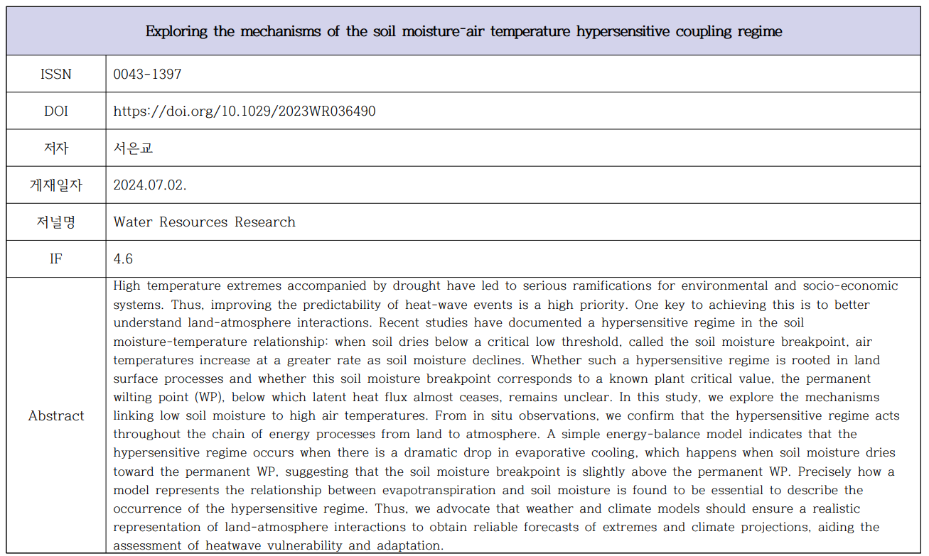 (서은교) Exploring the mechanisms of the soil moistureair temperature hypersensitive coupling regime