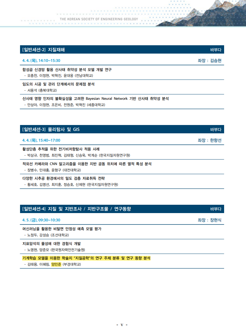 | (양민준) 2024 (사)대한지질공학회 정기총회 및 춘계학술대회_기계학습 모델을 이용한 학술지“지질공학”의 연구 주제 분류 및 연구 동향 분석 | |||