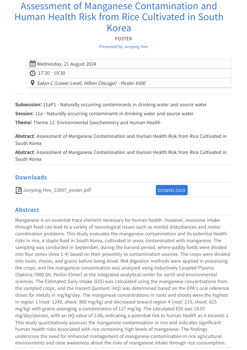 (양민준) 2024 Goldschmidt Conference_Assessment of Manganese Contamination and Human Health Risk from Rice Cultivated in South Korea