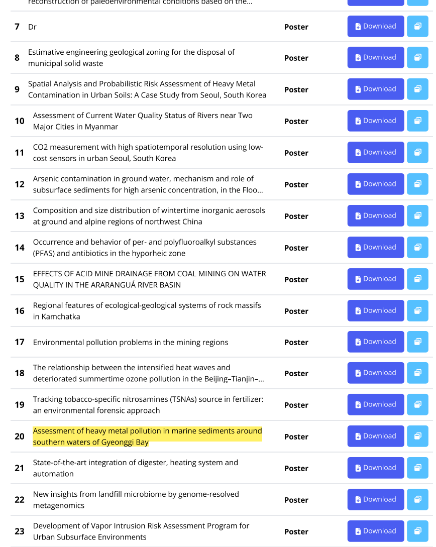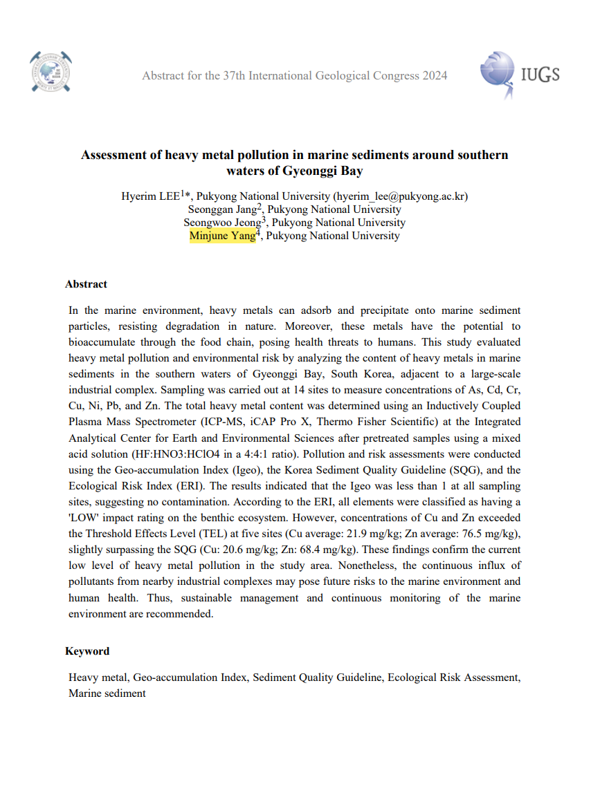 (양민준) The 37th International Geological Congress 2024_Assessment of heavy metal pollution in marine sediments around southern waters of Gyeonggi Bay