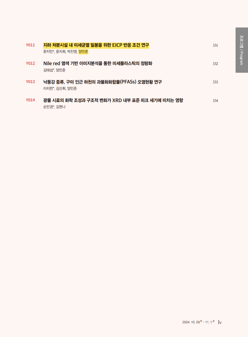 | 다음 | (양민준) 2024 추계지질과학연합학술대회 및 대한지질학회 제79차 정기총회_낙동강 중류, 구미 인근 하천의 과불화화합물(PFASs) 오염현황 연구 |