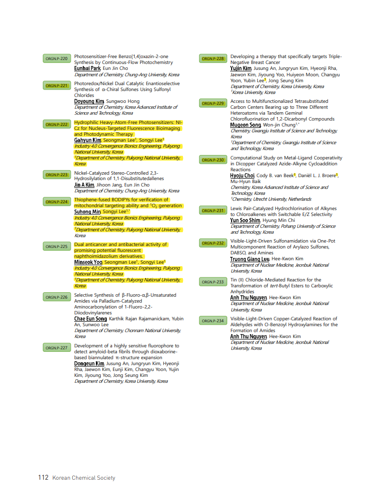 (이송이) 대한화학회 제134회 학술발표회_Thiophene-fused BODIPYs for verification of mitochondrial targeting ability and 1O2 generation