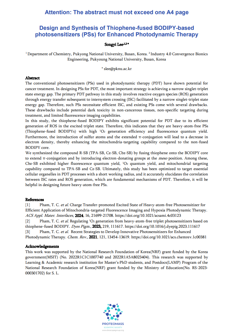 (이송이) IC3EM_Design and Synthesis of Thiophene-fused BODIPY-based photosensitizers (PSs) for Enhanced Photodynamic Therapy