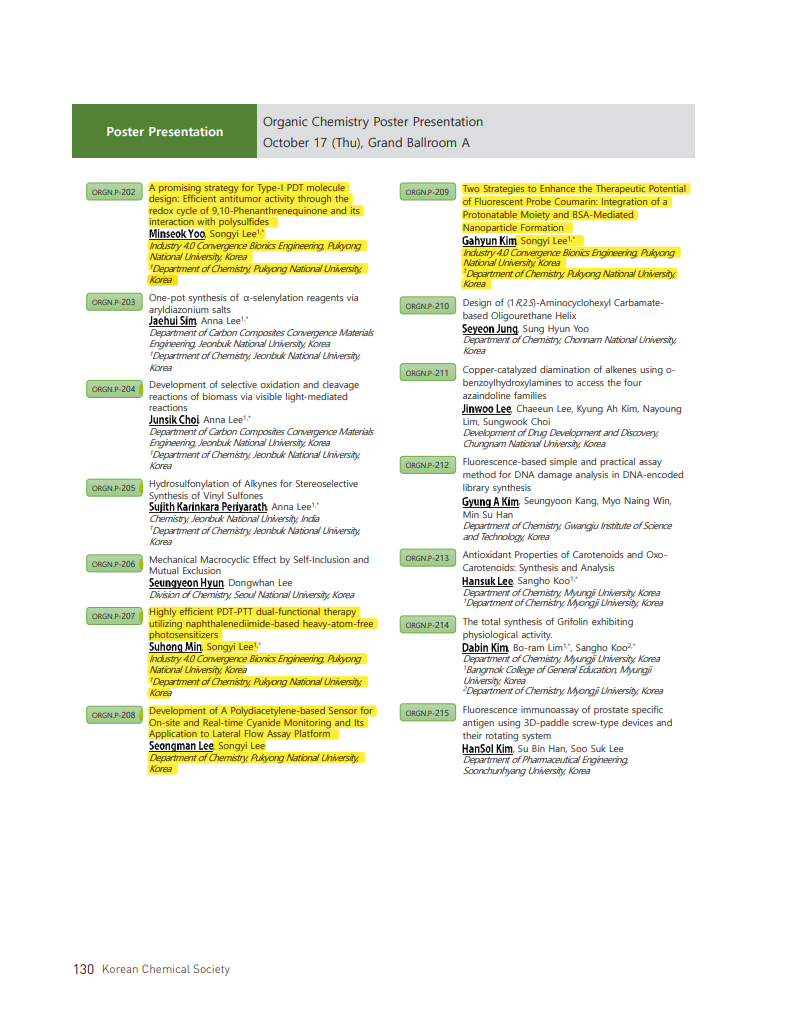 (이송이) 대한화학회 제135회 학술발표회_Highly efficient PDT-PTT dual-functional therapy utilizing naphthalenediimide-based heavy-atom-free photosensitizers