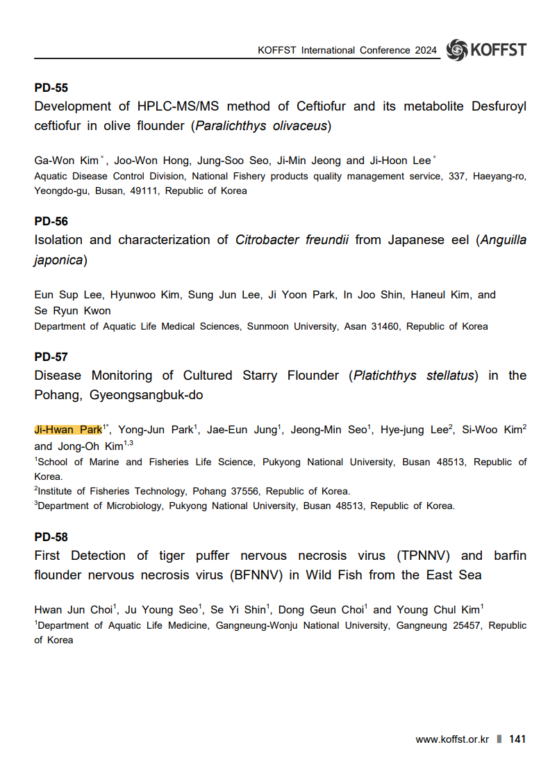 (김종오) KOFFST International Conference 2024_Disease Monitoring of Cultured Starry Flounder (Platichthys stellatus) in the Pohang, Gyeongsangbuk-do