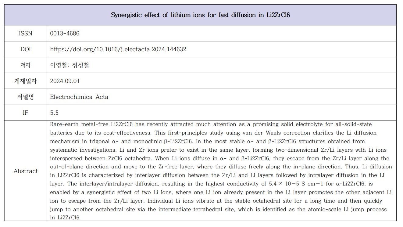 (정성철) Synergistic effect of lithium ions for fast diffusion in Li2ZrCl6