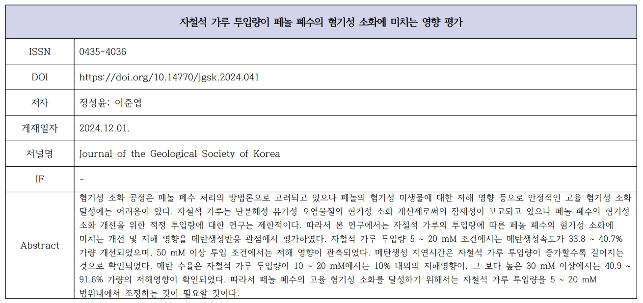 (이준엽) 자철석 가루 투입량이 페놀 폐수의 혐기성 소화에 미치는 영향 평가