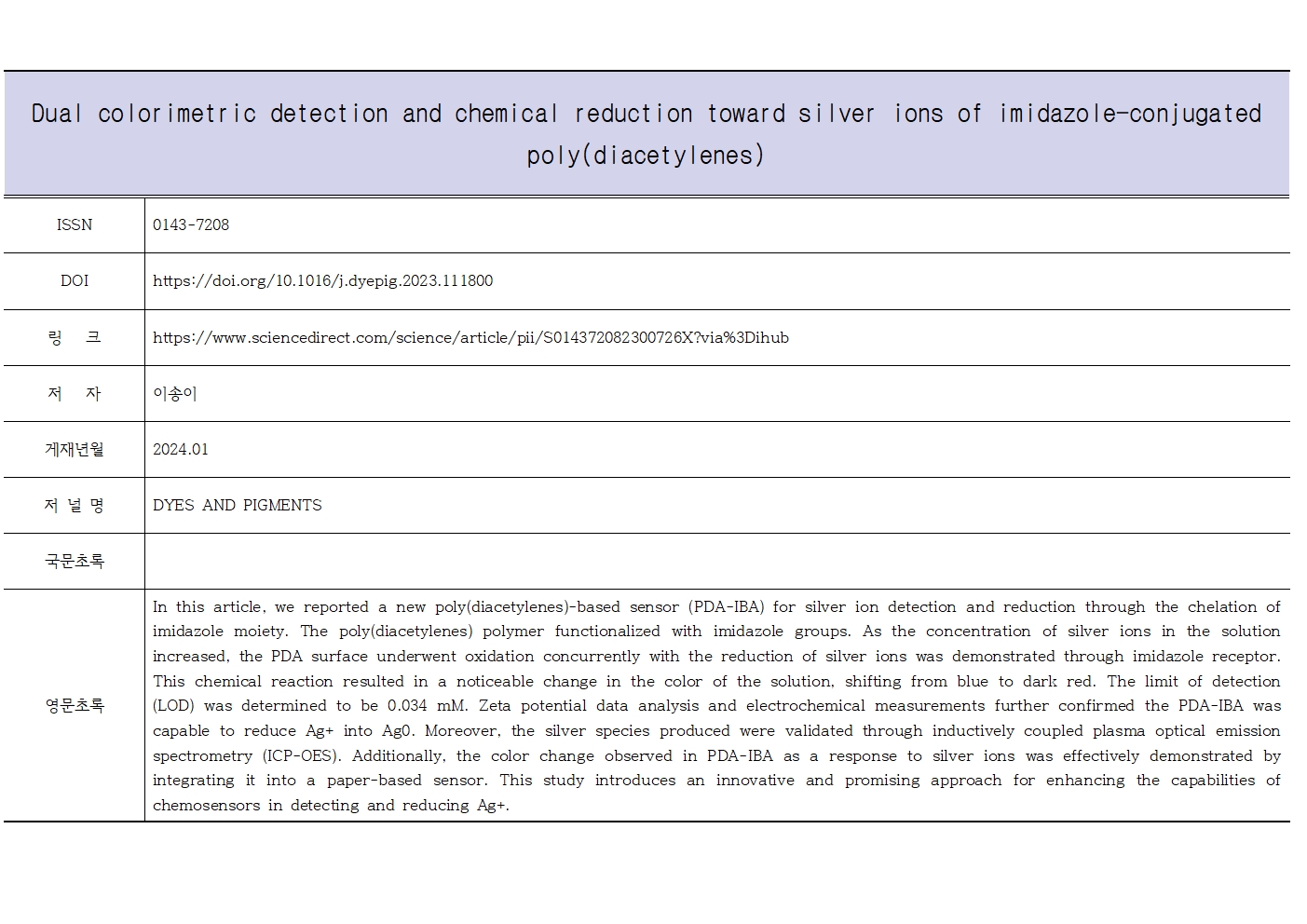 (이송이) Dual colorimetric detection and chemical reduction toward silver ions of imidazole-conjugated poly(diacetylenes)