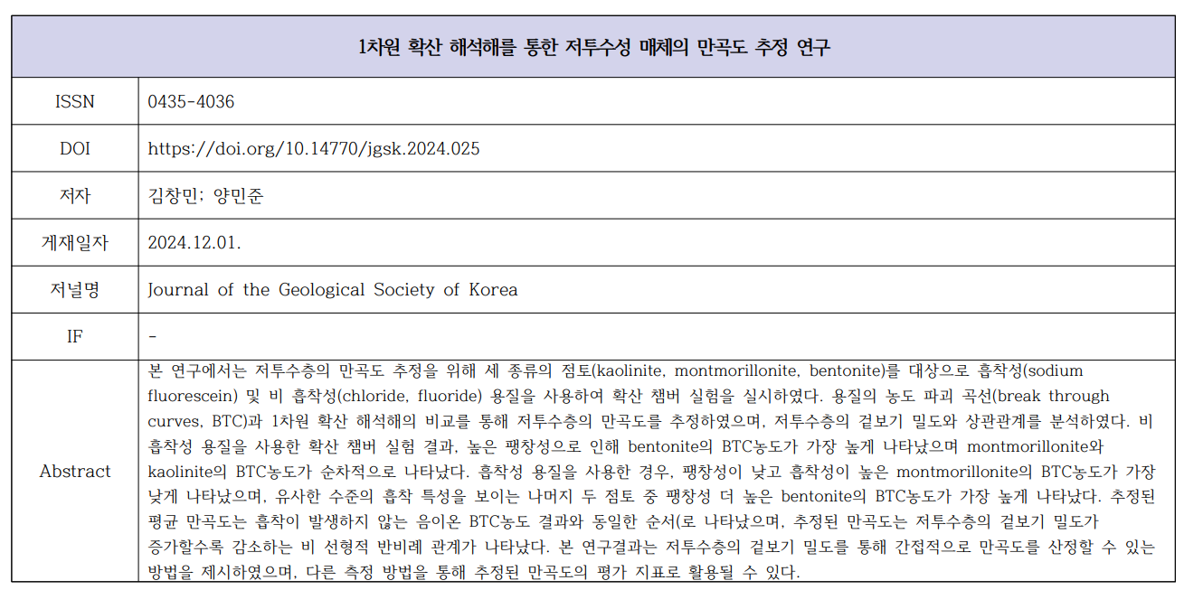 (양민준) 1차원 확산 해석해를 통한 저투수성 매체의 만곡도 추정 연구