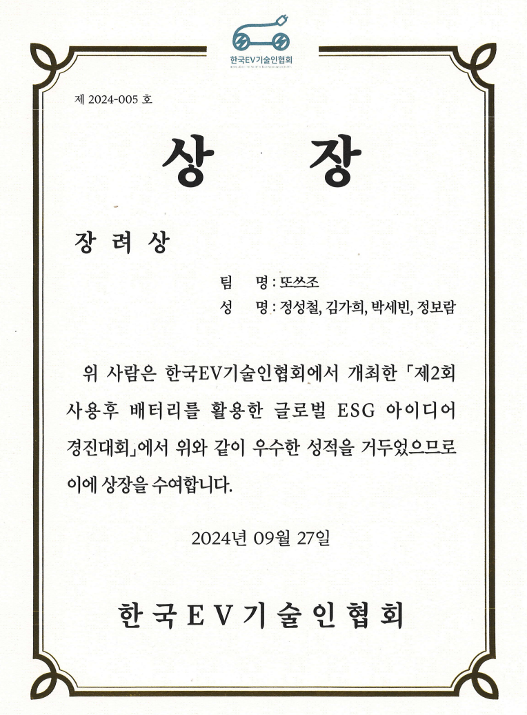 (정성철) 한국EV기술인협회_장려상