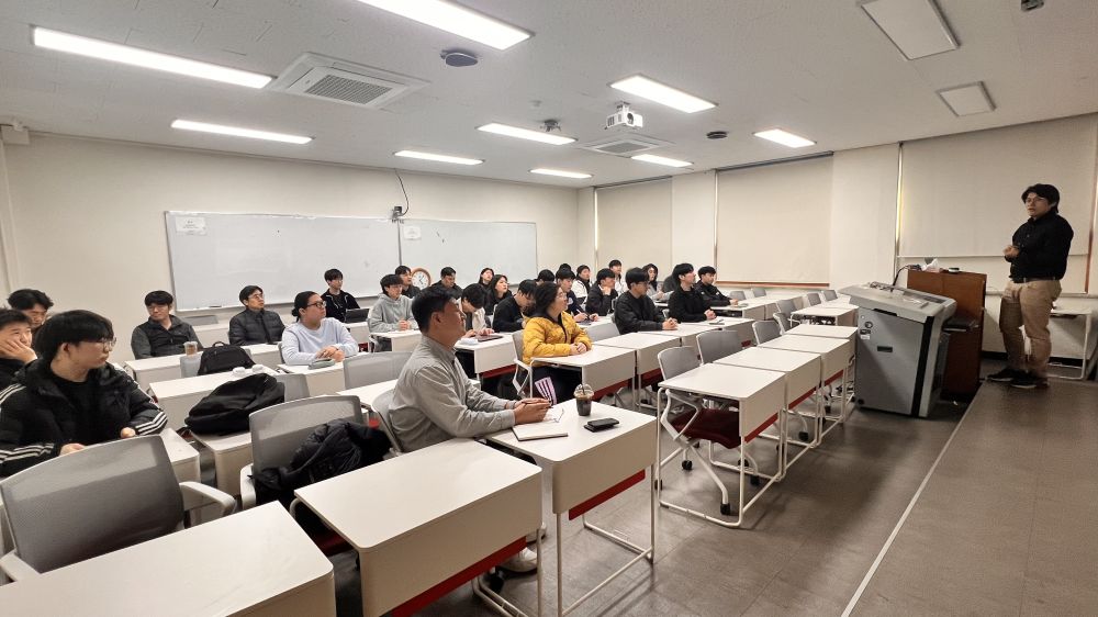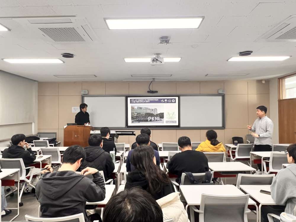 □ 추진 현황 - 일 시: 2025. 03. 13.(목) 16:30 ~ 18:30 - 장 소: 대연캠퍼스 자연과학1관(B15) 3층 5303호 - 참 석 자: 총 32명 · 국립부경대학교 교·직원 8명 · 외부 초정 강연자 1명 · 학부생 및 대학원생 23명
