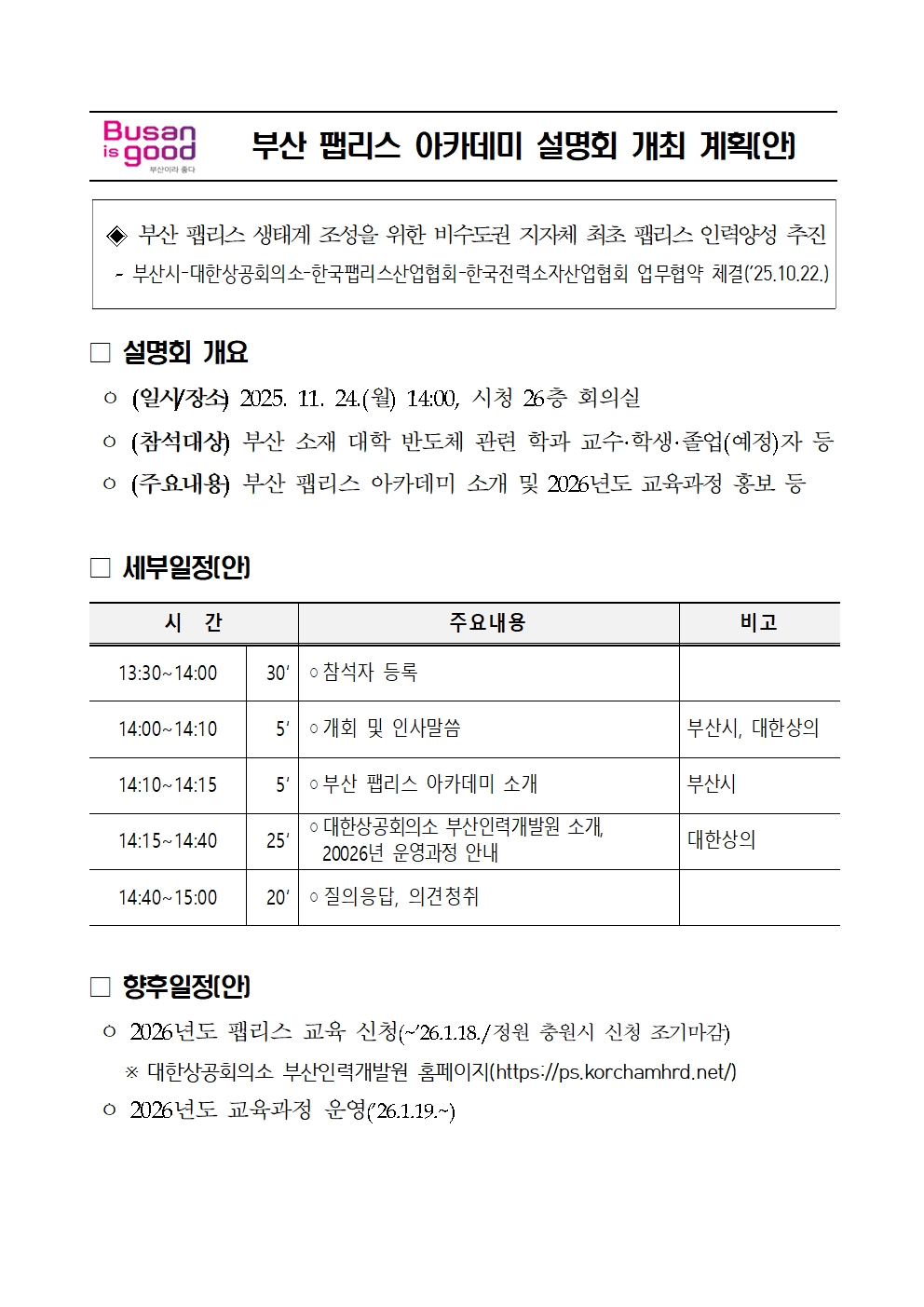 부산 팹리스(반도체설계) 교육 설명회 개최 안내(부산광역시/대한상공회의소 부산인력개발원)